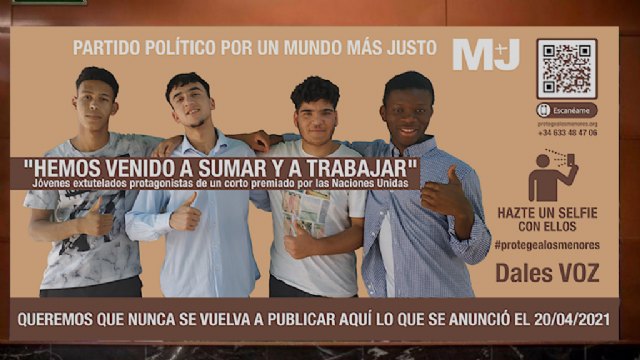 El partido político M+J, que denunció ante la Junta Electoral el cartel de VOX por un presunto delito de odio, ha contratado por un año el mismo espacio publicitario donde se anunció para presentar historias reales de menores extutelados con el objetivo de restituir su imagen.