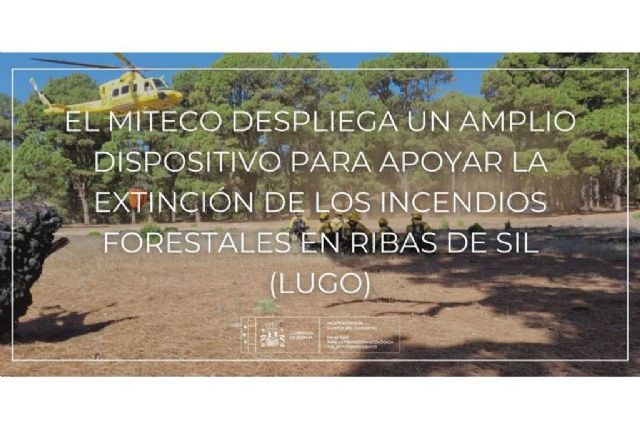El Ministerio para la Transición Ecológica y el Reto Demográfico (MITECO) ha movilizado un amplio dispositivo de medios humanos y materiales, a petición de la Xunta de Galicia, para apoyar en la extinción de los dos incendios declarados en el término municipal de Ribas de Sil, en la provincia de Lugo.