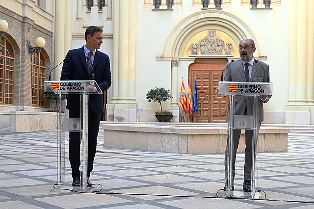 El presidente del Gobierno, Pedro Sánchez, se ha reunido en Zaragoza con el presidente del Gobierno de Aragón, Javier Lambán, para reforzar el apoyo del Ejecutivo a una candidatura conjunta y en igualdad de condiciones entre Aragón y Cataluña para albergar los Juegos Olímpicos de Invierno 2030.