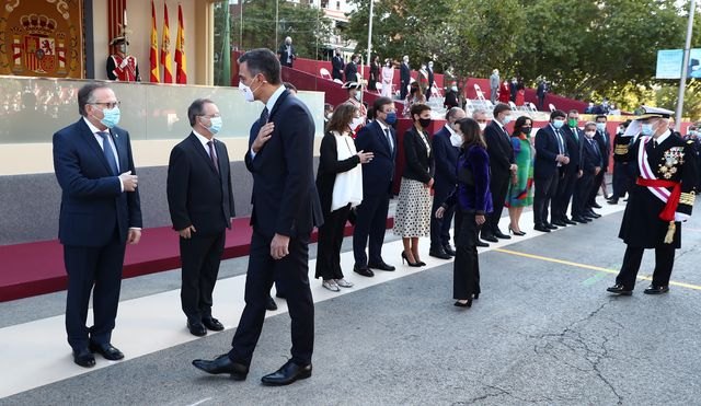 El presidente, Pedro Sánchez, ha asistido esta mañana a los actos conmemorativos del Día de la Fiesta Nacional, presididos por SS.MM. los Reyes en la Plaza de Lima de Madrid. Un acto al que han asistido también todos los miembros del Gobierno, excepto la ministra de Industria, Comercio y Turismo que participaba en Italia en la reunión de ministros del G-20. Tras el desfile militar, el presidente Sánchez ha acudido a la recepción que ofrecen SS.MM. los Reyes en el Palacio Real de Madrid.
