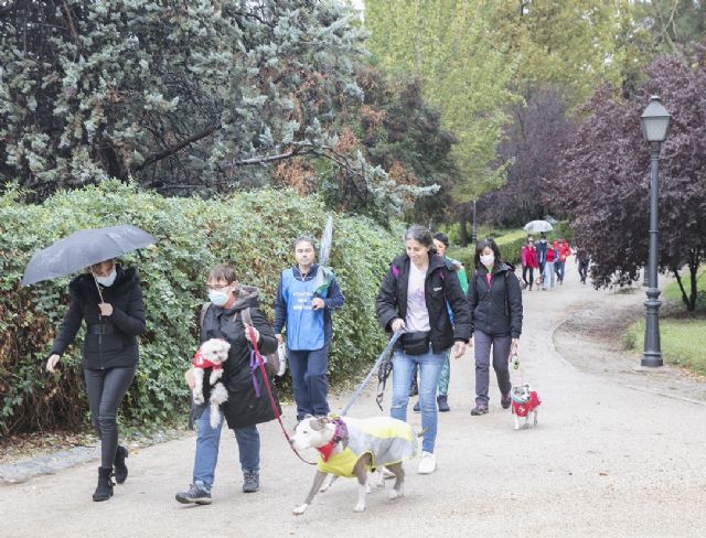 Más de una veintena de personas se han reunido este sábado en el Parque del Oeste de Madrid para realizar un paseo solidario junto a sus mascotas bajo el lema “Un día con tu mejor amigo”.