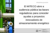 12/11/2021 El MITECO abre a audiencia pública las bases reguladoras para conceder ayudas a proyectos innovadores de almacenamiento energético