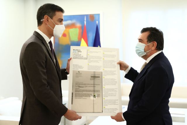 El presidente del Gobierno, Pedro Sánchez, ha recibido al periodista Arsenio Escolar, que le ha presentado su manifiesto 'Archiletras. Por un lenguaje claro en la Administración', en el que aboga por la necesidad de que la información que se transmite, desde todos los niveles de la Administración, sea comprensible, cercana y amable para los ciudadanos, situándolos en el centro de la actividad pública.