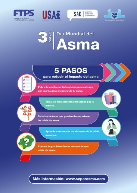 El Sindicato de Técnicos de Enfermería (SAE) se suma al Día Mundial del Asma para concienciar sobre los problemas de diagnóstico y tratamiento que existen a la hora de abordar esta patología: en España, según los expertos, el infradiagnóstico y el sobrediagnósticos afectan a entre un 10 y un 30% de la población.