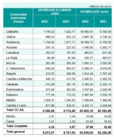 En total, en el año 2022, las Comunidades Autónomas de régimen común y Ciudades de Ceuta y Melilla ingresarán 111.276 millones de euros en concepto de entregas a cuenta. Esta cifra es la más alta de la serie histórica.