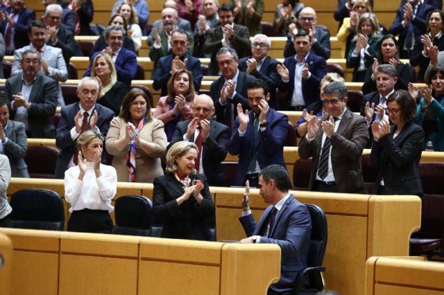 El presidente del Gobierno, Pedro Sánchez, durante su comparecencia en el Senado para explicar las medidas económicas para afrontar las consecuencias de la guerra de Ucrania. | Foto: Moncloa/Fernando CalvoEl presidente ha anunciado que en los once meses que quedan de legislatura continuará avanzando en la agenda social con prudencia, con determinación, con sensibilidad social para proteger a la gente de a pie y con justicia fiscal para que paguen más quienes más tienen. "Vamos a recuperar el poder adquisitivo de las clases trabajadoras y una era de prosperidad similar a la que vivieron en los años 80".