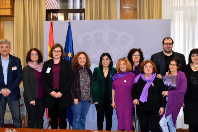 La ministra de Sanidad, Carolina Darias, junto con los representantes de la Coordinadora Estatal de VIH/SIDA