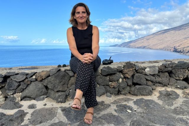 La vicepresidenta tercera y ministra para la Transición Ecológica y el Reto Demográfico, Teresa Ribera, en el mirador de Tacorón, en la isla de El Hierro.