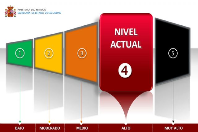 El Ministerio del Interior ha ordenado reforzar las medidas de prevención, protección y respuesta previstas en el vigente Nivel 4 de Activación del Plan de Prevención, Protección y Respuesta Antiterrorista durante la inminente festividad de la Semana Santa, periodo de especial significado que comporta una numerosa presencia y participación de ciudadanos en multitud de actos públicos, así como un destacado aumento de los desplazamientos por todo el territorio nacional en todo tipo de transportes.