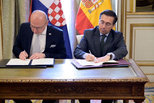 El ministro de Asuntos Exteriores, Unión Europea y Cooperación, José Manuel Albares, y su homólogo croata, Gordan Grlić Radman, durante la firma del acuerdo.