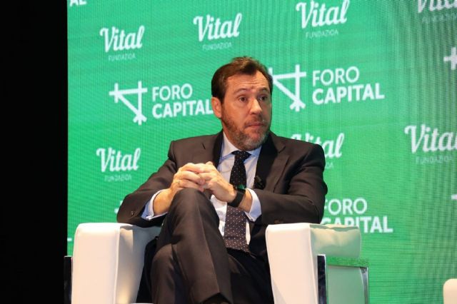 El ministro de Transportes y Movilidad Sostenible, Óscar Puente, interviene en el Foro Capital celebrado en Vitoria-Gasteiz.