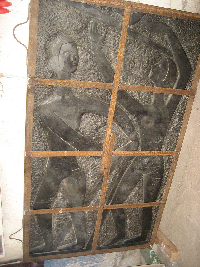 El antiguo mural de mármol negro que durante décadas adornó las instalaciones del desaparecido Club Remo volverá a lucir con todo su esplendor para el disfrute de los murcianos. La pieza, que fue retirada del inmueble cuando se derribó, adornará el jardín del Museo de la Ciudad en los próximos meses.