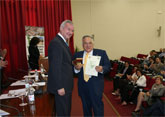 Valcárcel felicitó en su discurso a todos los galardonados por la institución docente, que en esta ocasión, y con motivo de sus 25 años de actividad educativa, ha otorgado unos Diplomas Conmemorativos a los profesores y al personal de Administración y Servicios que facilitaron la instauración de las diversas asignaturas impartidas en la Facultad de Veterinaria, y que a día de hoy continúan prestando un servicio activo.