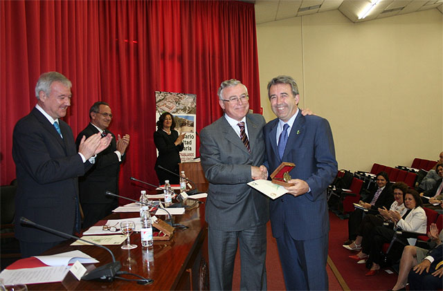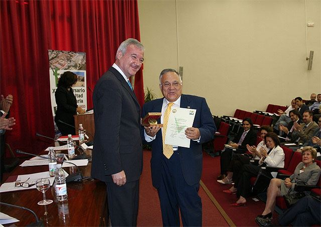 El jefe del Ejecutivo murciano, que estuvo acompañado por el rector de la Universidad de Murcia, José Antonio Cobacho, por el decano de la Facultad de Veterinaria, Antonio Rouco Yañez, y el consejero de Educación, Ciencia e Investigación, Juan Ramón Medina Precioso, presidió la entrega de medallas y distinciones a ex miembros del equipo docente del centro, mecenas y patrocinadores, así como a la Consejería de Agricultura y Agua de la Comunidad de Murcia por su apoyo al centro, que fue recogida por el consejero Antonio Cerdá.