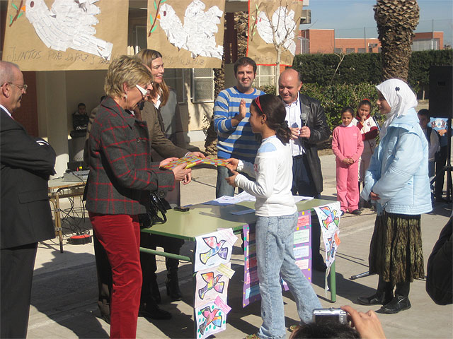 Durante su intervención, Maruja Pelegrín ha agradecido la colaboración del claustro de profesores y la importante labor que están ejerciendo los padres y madres de los alumnos del centro en una actividad que fomenta y promulga la paz y la tolerancia en el mundo.