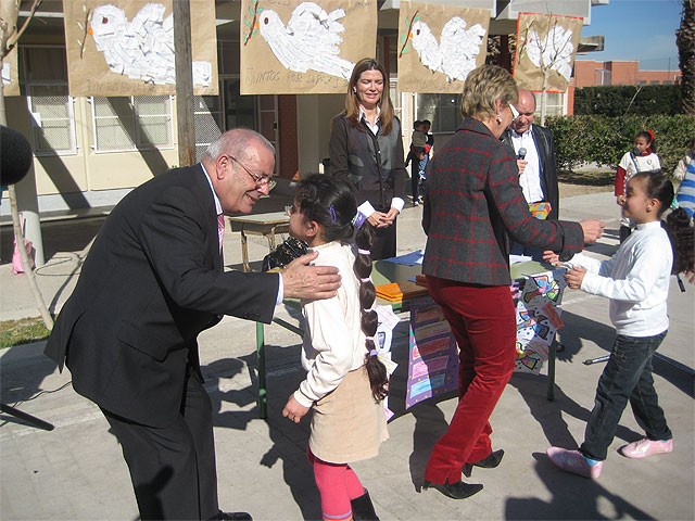 Los concejales de Educación, Bienestar Social y Bomebros, Pilar Megía, Maruja Pelegrín y Remigio López, respectivamente, ha visitado esta mañana el centro participar en las actividades que han organizado en el centro para que toda la comunidad educativa trabaje a favor de la paz.
