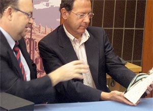 El presidente del Colegio Oficial de Enfermería de la Región de Murcia, Diego Gutiérrez, acompañado por los restantes miembros de su Junta de Gobierno, ha querido hacer entrega al Alcalde, Miguel Ángel Cámara, de una reproducción exacta de la escultura, obra de Miguel Llamas, y donada a la ciudad con motivo de la conmemoración del centenario de la constitución de este colegio profesional.