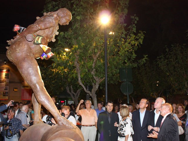 Cámara ha asistido al acto de inauguración de la obra, presidido por Ramón Luis Valcárcel, que ha contado con la presencia, entre otros, del Presidente de la Fundación CajaMurcia –que ha donado la obra a la ciudad-, Carlos Egea, y del propio autor.