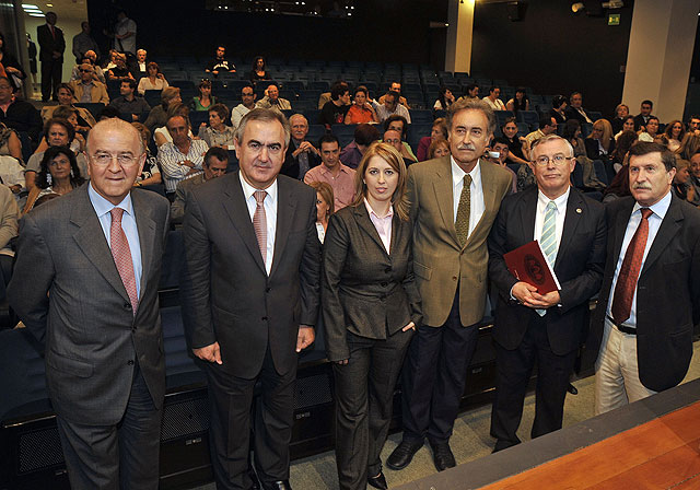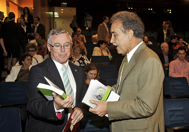 El pintor estuvo presente en el acto de presentación del libro, que se celebró en el Aula de Cultura de Cajamurcia con la presencia del rector de la Universidad, José Antonio Cobacho, el delegado del Gobierno, Rafael González, el alcalde de Blanca, Rafael Laorden y el presidente de la entidad financiera, Carlos Egea.