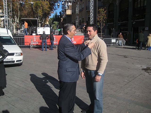 El concejal de Fiestas y Cultura Popular, Rafael Gómez Carrasco, la insignia de la asociación ‘5 al día’ debido “al compromiso del consistorio murciano con la alimentación saludable”.