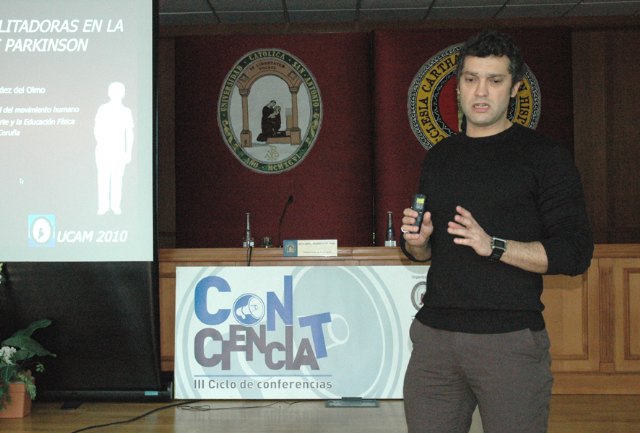 El doctor en Educación Física de la Facultad de Ciencias del Deporte de la Universidad de A Coruña, Miguel Fernández del Olmo, ha impartido la conferencia ‘Estrategias rehabilitadotas en pacientes con la enfermedad de Parkinson’.