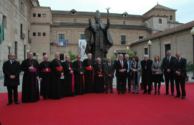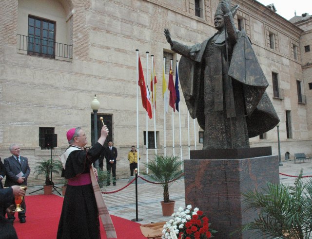 Bendición de la escultura de Juan Pablo II Cabe destacar la bendición, a cargo del obispo de Cartagena, monseñor José Manuel Lorca Planes, de una exclusiva escultura del pontífice, realizada en fundición de bronce por el afamado escultor salmantino, representante del los artistas para el Jubileo del año 2000 ante Su Santidad, Venancio Blanco, que ocupará a partir de ahora un lugar preferencial en la plaza principal de acceso al Monasterio de los Jerónimos.