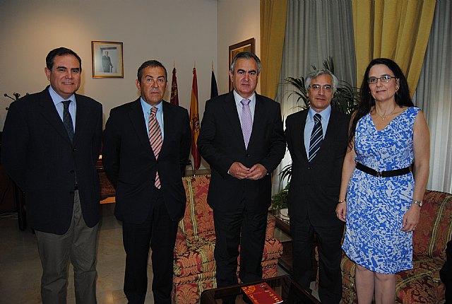Antes de iniciarse la jornada, el delegado del Gobierno, Rafael González Tovar, se ha reunido con el consejero comercial de la Embajada de España en China, Alberto Alonso Díaz, y la directora Territorial de Comercio y delegada del ICEX en Murcia, María Amelia Guzmán, para tratar sobre el contenido de aquélla.