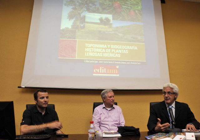 La editora de la Universidad de Murcia (EDITUM) presentó el libro "Toponimia y biogeografía histórica de plantas leñosas ibéricas", de A. Félix Carrillo, José Sebastián Carrión, S. Fernández y Juan Luis Román del Cerro, que ha publicado dentro de su colección Gaia.