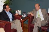 El Alcalde de Murcia, Miguel Ángel Cámara, acompañado por el Teniente de Alcalde de Deportes, Miguel Cascales, ha mantenido esta mañana una reunión con la directiva del Real Murcia, presidida por Jesús Samper.