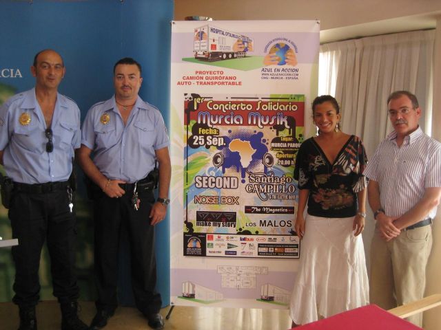 La Concejalía de Empleo, Protección Civil y Cooperación al Desarrollo y la ONG´D Azul en Acción han organizado un concierto solidario en el que participarán Second, Santiago Campillo, Noisebox, The Magnetics, Los Malos y Make My Story. El objetivo es recaudar fondos para un quirófano autotransportable para operaciones oftalmológicas en África. El concierto se celebrará el día 25 de septiembre, a partir de las 20.30 horas, en el Auditorio municipal Murcia Parque. Las entradas tendrán un precio de 10 euros y 8 euros con el carné universitario. Se podrán adquirir en la taquilla del Murcia Parque el día del concierto, y en El Corte Inglés, Servicam y Ticketmaster, a partir del jueves 9 de septiembre.