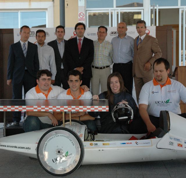 La UCAM ha presentado esta mañana en las instalaciones de su Campus, el coche con el que participará en la I Edición de la Solar Race Región de Murcia 2010. La Universidad, que participa por primera vez en una competición de estas características, pugnará en la categoría de vehículos experimentales ya que el prototipo con el que participará, el 'San Antonio', se impulsa a partir de energía solar fotovoltaica, gracias a los sistemas de captación solar que incorpora horizontalmente en su parte superior.