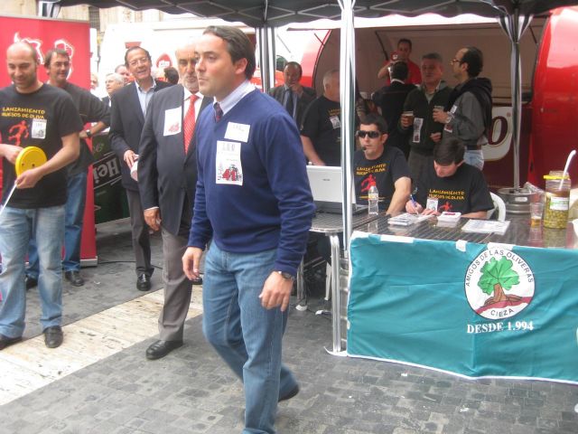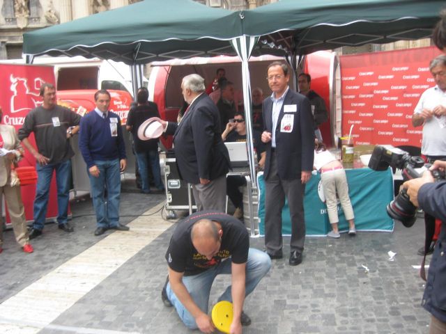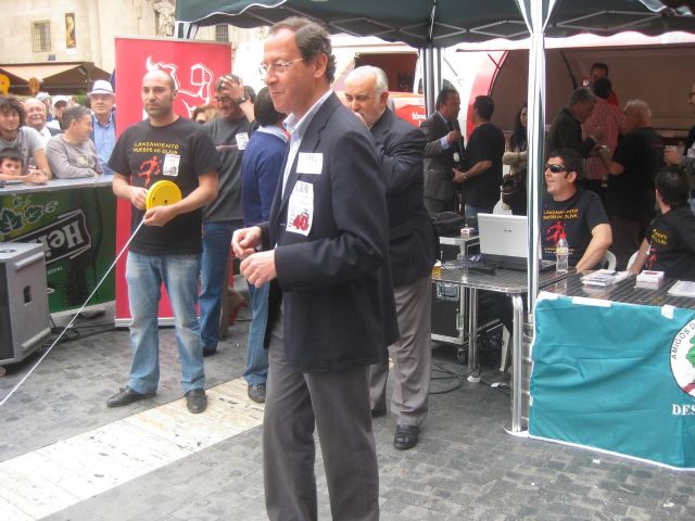 El Alcalde de Murcia, Miguel Ángel Cámara, ha participado un año más en el tradicional lanzamiento de hueso de oliva que se realiza en la Plaza del Cardenal Belluga.