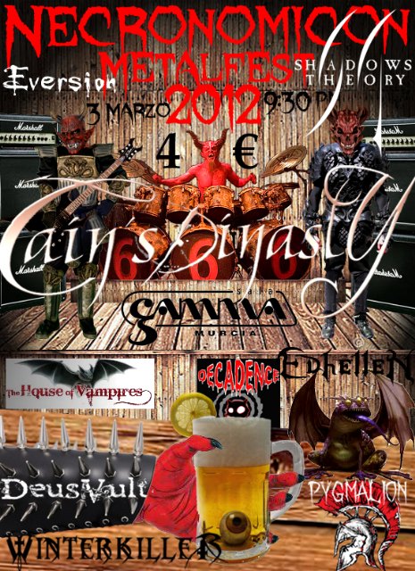 Necronomicón Metal Festival fue fundado en New York (USA) por Rose Mack cantante de Opera y Metal, Necronomicón lleva celebrándose 5 años en New York, ahora Necronomicon ha sido trasladado por primera vez a Murcia (SPAIN) donde varios grupos locales y de Alicante se darán cita en esta primera edición de Necronomicon en Spin.