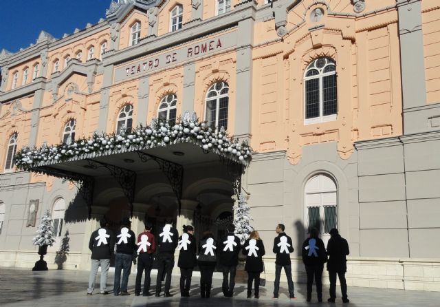 Vestidos de negro y con el monigote blanco típico de las inocentadas pegado a la espalda, una decena de jóvenes socialistas se ha paseado por las inmediaciones del teatro hablando con los transeúntes sobre su inminente apertura y dejando claro que, cuando de abrir las puertas del Romea se trata, siempre se trata de una "inocentada", ya que ninguna de las fechas anunciadas por el consistorio murciano se han cumplido.
