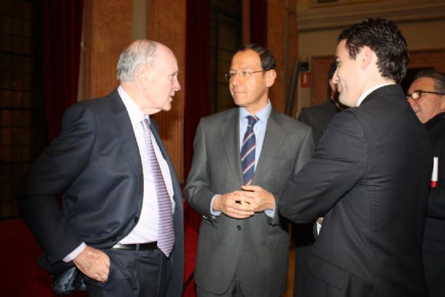 Miguel Ángel Cámara ha presidido el acto de presentación de la obra “El modernizador. Una aproximación a Floridablanca”, en el que se han dado cita numerosas personas, que han abarrotado la capacidad del Salón de Plenos. En el mismo han intervenido, además del Alcalde y del autor, el Profesor Emérito de la Universidad de Murcia José Antonio Lozano Teruel, el presidente de la Corporación BMN, Carlos Egea, y el Rector de la Universidad de Murcia, José Antonio Cobacho.