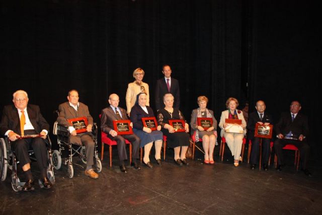 Cinco hombres y cuatro mujeres se han convertido hoy en las primeras personas distinguidas con el premio "Mayor del Municipio de Murcia". Los nueve han recibido hoy de manos del Alcalde las placas conmemorativas que les acreditan como titulares de ese galardón, en un solemne acto que se ha celebrado en el Teatro Romea, con la presencia de numerosos socios de los centros de mayores que ha querido estar presentes en este acontecimiento. Los protagonistas del evento han sido Elías Ros Garrigós, Alberto Balanza Bonache, Ana Morenilla Orrico, Francisca Magaña Fuentes, Mariano Herrera Ortiz, Josefina Moreno Rodríguez, Ginés Vivancos Navarro, Antonio Cañete Manzanera y Juana Penalva Marín.