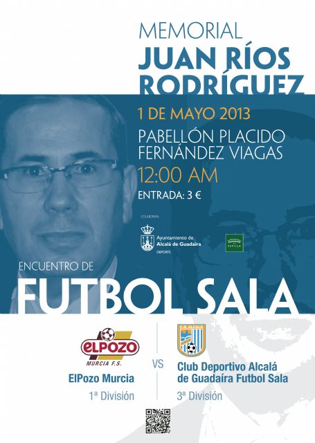 La plantilla de ElPozo Murcia FS viaja este mediodía a tierras sevillanas para disputar mañana, miércoles 1 de Mayo, el Memorial Juan Ríos en Alcalá de Guadaira (Sevilla) ante un combinado de jugadores formado por el CD Alcalá de Guadaira FS de Tercera División. El encuentro comenzará a las 12.30 horas en el pabellón Plácido Fenández Viagas de la localidad sevillana y las entradas tendrán un precio único de 3 Euros, y sus beneficios irán destinados a una ONG designada por el Consistorio.