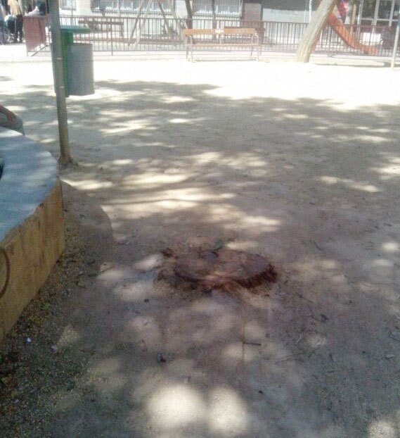 El edil socialista ha acudido hoy a la zona alertado por los vecinos, quienes le han expresado su malestar por esta actuación. Zapata recuerda que son árboles de gran porte, con 30 años de antigüedad y 18 metros de altura, y con su tala se asesta "un duro golpe al ecosistema del jardín, además de cargarse la sombra que ofrecían".