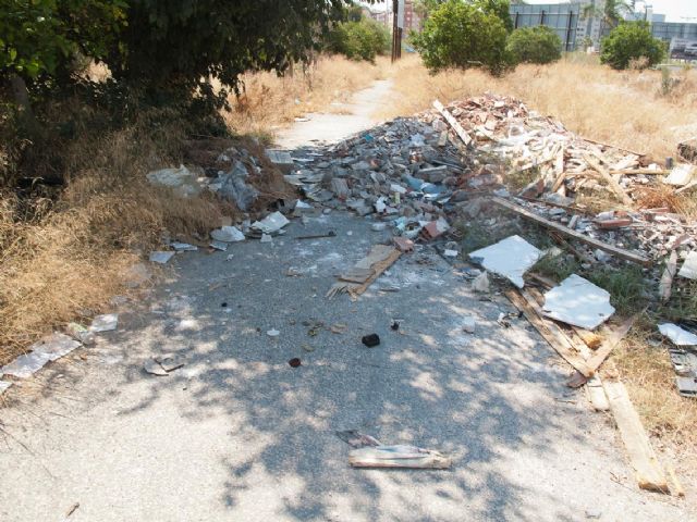 La concejal Susana Hernández vuelve a denunciar por tercer verano consecutivo la existencia de escombreras ilegales en dos solares situados a ambos lados del cruce de la Avenida Juan Carlos I con la Avenida Reino de Murcia (a la altura de la rotonda donde está ubicada la escultura Mantis de Miquel Navarro). "A día de hoy siguen las montañas de residuos, restos de obras y materiales de construcción que han provocado las quejas de los vecinos de la zona del Molino Alfatego (El Puntal)", explica Hernández.