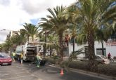 28/08/2013 Cartagena Quitan las ramas bajas y los dátiles de las palmeras de la calle Real para evitar molestias