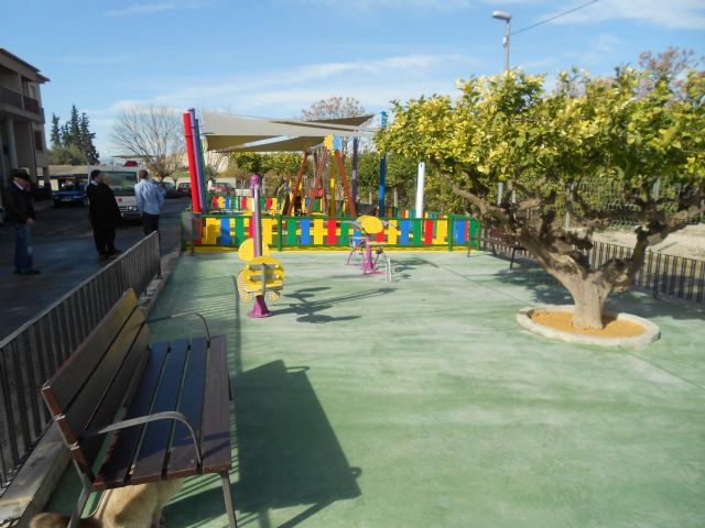 El jardín cuenta con dos espacios con seis aparatos de gerontogimnasia. En esta zona el suelo es de hormigón coloreado. Además, se han colocado seis bancos nuevos y se han respetado los dos limoneros que ya existían.