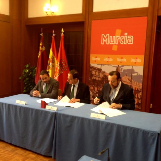 El Alcalde de Murcia, Miguel Ángel Cámara, y el Presidente de la Asociación de la Prensa y Decano del Colegio Oficial de Periodistas de la Región, Juan Antonio de Heras, han formalizado esta mañana el convenio que permitirá a los murcianos acceder a las páginas del histórico semanario Hoja del Lunes a través de la Red. Al acto también han asistido los periodistas Tito Conesa y Mariano Caballero, quienes dirigieron la publicación en el periodo que se ha digitalizado.