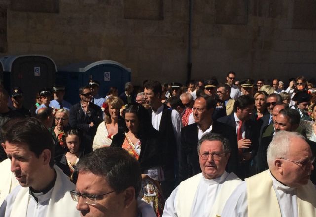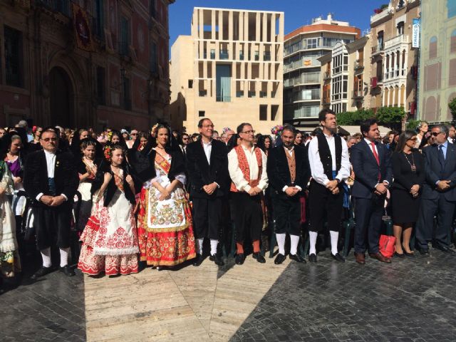 El consejero de Industria, Turismo, Empresa e Innovación, Juan Carlos Ruiz, asistió hoy, en la Plaza del Cardenal Belluga de Murcia, a la misa huertana en honor a la Virgen de la Fuensanta organizada por la Federación de Peñas Huertanas.