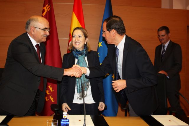 El Alcalde, Miguel Ángel Cámara, ha firmado esta mañana el acuerdo de colaboración con la Ministra de Fomento, Ana Pastor, y el Presidente de la Comunidad Autónoma, Alberto Garre, que permitirá desarrollar este proyecto, cuyo coste asciende a 2,8 millones de euros. El Ayuntamiento se hará cargo de financiar el 56,2% del presupuesto –1,6 millones-, mientras que el Ministerio de Fomento aportará el 35% -996.000 euros- y la Comunidad Autónoma colaborará con 250.000 euros.