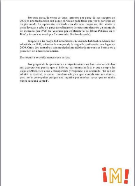 El Sr. Cámara está usando descaradamente su posición de fuerza al frente del Ayuntamiento de Murcia para defender una situación personal, que es del todo indefendible. Nos parece fuera de lugar que la web municipal del Ayuntamiento de Murcia pagada por los impuestos de todos los ciudadanos de Murcia, se utilice por parte del Alcalde para defenderse de los problemas judiciales que tiene, fruto de un caso, cada vez más evidente, de presunta corrupción política.
