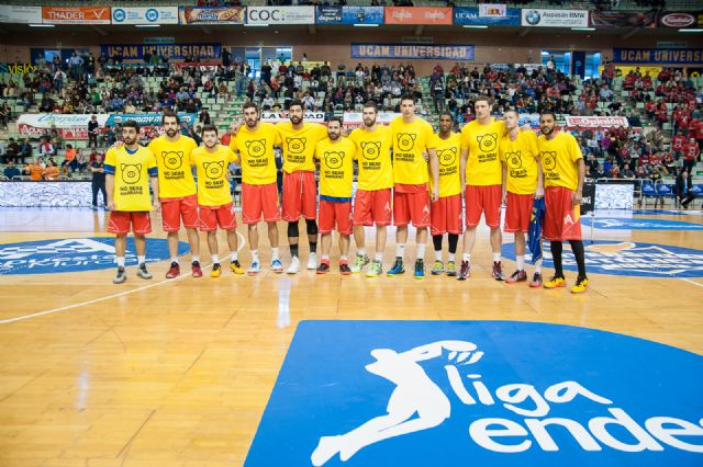 En el partido contra Morabanc Andorra, los jugadores del UCAM Murcia CB no salió en la presentación con el tradicional ‘cubre’. En esta ocasión, la plantilla lució unas camisetas amarillas con el lema ‘No seas marrano’, con el que el Ayuntamiento de Murcia y Ferrovial quieren dirigirse, específicamente, al ciudadano que no respeta la ciudad, poniendo de manifiesto que no son todos los murcianos los causantes de la suciedad de Murcia, sino unos pocos, los destinatarios de la campaña.