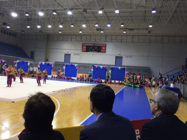 El Alcalde, José Ballesta, ha presenciado buena parte de las 33 actuaciones que han ofrecido las gimnastas, formadas en la escuela municipal que, por otra parte, fue la primera que se fundó en la región y se ha convertido en una de las que registran más inscritos.