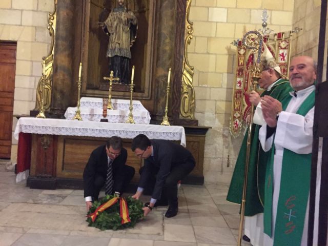 Por otra parte, la celebración ha tenido lugar en la Catedral porque de esa forma se ha podido colocar una corona de laurel en la tumba cercana a los Puxmarines, en concreto en la capilla de San Juan Nepomuceno, tumba de uno de los descendientes del fundador, Don Alonso Fernández de Cascales, que como dice en ella “Don Alonso Rodrigo de Castilla y Zayas, descendiente de Pedro I de Castilla, Regidor Perpetuo de la Ciudad de Murcia, Caballero de la Orden de Calatrava y Señor Jurisdiccional de las Villas de Puebla de Santarén y Torremillanos, y abuelo del primer Marqués de Iscar en Sevilla. Murcia, Mayo de 1668. RIP”.