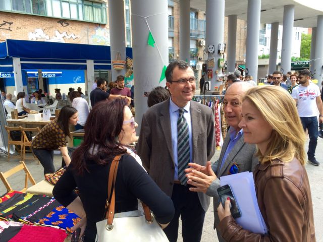 El Alcalde, José Ballesta, y el concejal de Fomento, Roque Ortiz, han visitado esta mañana el R3 Market, celebrado en la Plaza de la Universidad, y al que han asistido centenares de murcianos, participando en las actividades propuestas por el Ayuntamiento.