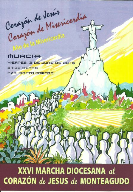 Este viernes, festividad del Sagrado Corazón de Jesús, tendrá lugar la XXVI Marcha-peregrinación al Cristo de Monteagudo, que partirá a las 21:00 horas desde la plaza de Santo Domingo de Murcia, este año bajo el lema: “Corazón de Jesús, Corazón de misericordia”.